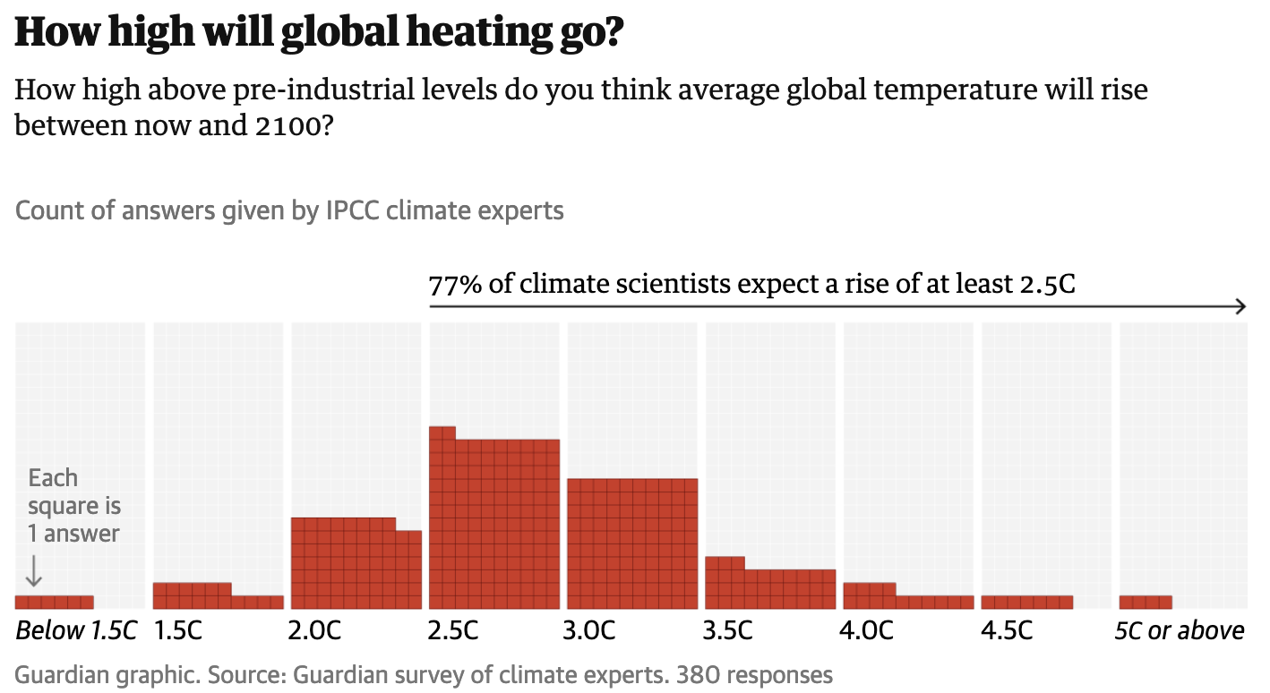 Im Möglichkeitsraum eines ernstgemeinten Klimajournalismus käme zumindest vor, dass die Organisierung der Gesellschaft in der derzeitigen Form nicht aufrechterhalten werden kann. Diese Option, so ungeheuerlich sie klingen mag, wird immer wahrscheinlicher. Warum? Wir steuern auf 2,5 und mehr Grad Erderwärmung bis zum Ende des Jahrhunderts zu, wie sich unlängst zahlreiche Klima-Wissenschaftler:innen sicher zeigten. Hitzewelle, Extremwetter, Meeresspiegelanstieg, Trinkwasserknappheit, Ernteausfälle, Zusammenbruch von Lieferketten. Wie soll eine Gesellschaft, die bei Klopapierknappheit schon durchdreht, angesichts dessen nicht kollabieren?
